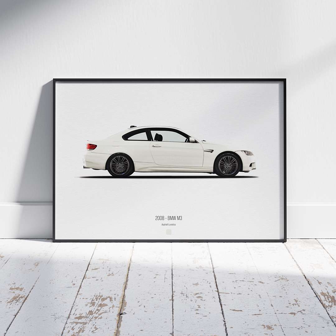 Bring the adrenaline and elegance of automotive design into your space with the Asphalt Lunatics Digital Poster Series. This product is a high-resolution digital download featuring the legendary 2008 BMW M3 – designed for car enthusiasts, interior lovers, and anyone passionate about speed and style.