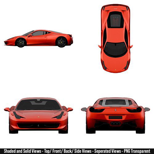 2011 – Ferrari 458 Italia Blueprint Pack High-Resolution For 3D Modeling