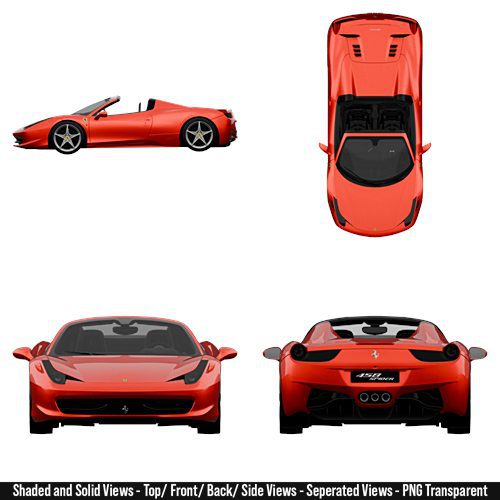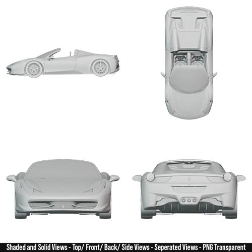 2012 – Ferrari 458 Italia Spider Blueprint Pack High-Resolution For 3D Modeling