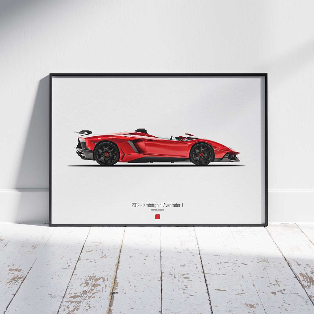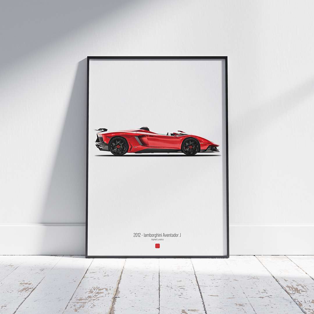 Bring the adrenaline and elegance of automotive design into your space with the Asphalt Lunatics Digital Poster Series. This product is a high-resolution digital download featuring the legendary 2012 Lamborghini Aventador J – designed for car enthusiasts, interior lovers, and anyone passionate about speed and style.