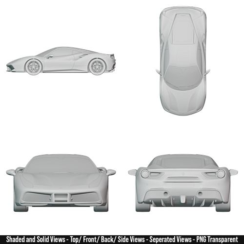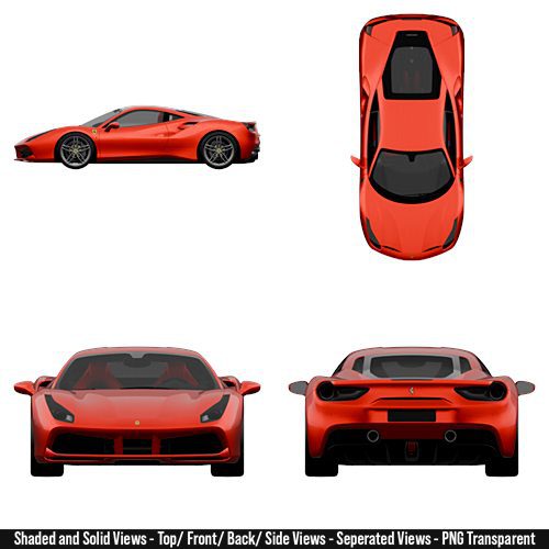 2015 – Ferrari 488 GTB Blueprint Pack High-Resolution For 3D Modeling