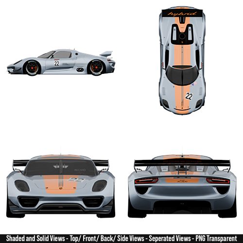 2015 – Porsche 918 RSR Blueprint Pack High-Resolution For 3D Modeling