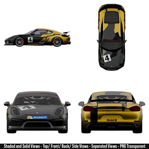 2015 – Porsche Cayman GT4 Clubsport Blueprint Pack High-Resolution For 3D Modeling