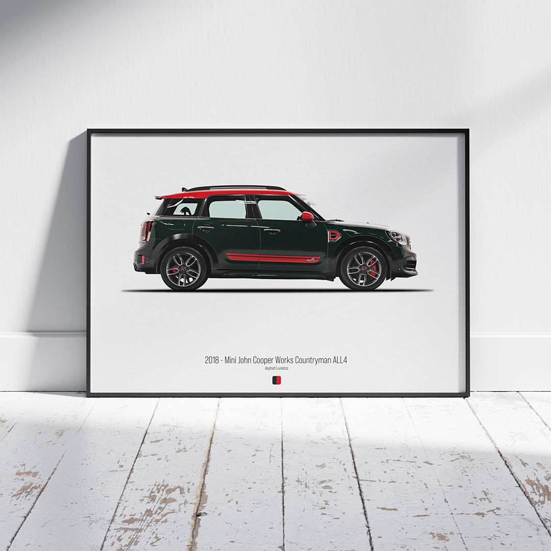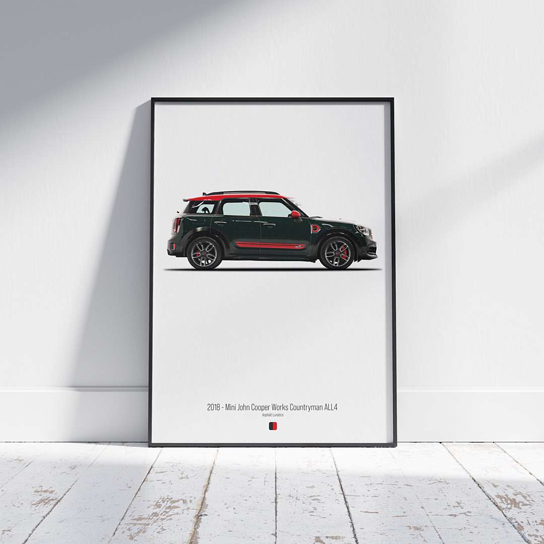 Add the Minimalist 2018 Mini John Cooper Works Countryman Poster to your cart, download instantly, and bring the spirit of speed into your home.