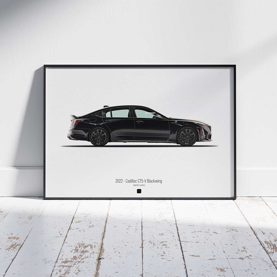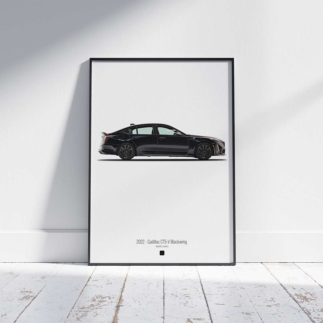 Bring the adrenaline and elegance of automotive design into your space with the Asphalt Lunatics Digital Poster Series. This product is a high-resolution digital download featuring the legendary 2022 Cadillac CT5V Blackwing – designed for car enthusiasts, interior lovers, and anyone passionate about speed and style.