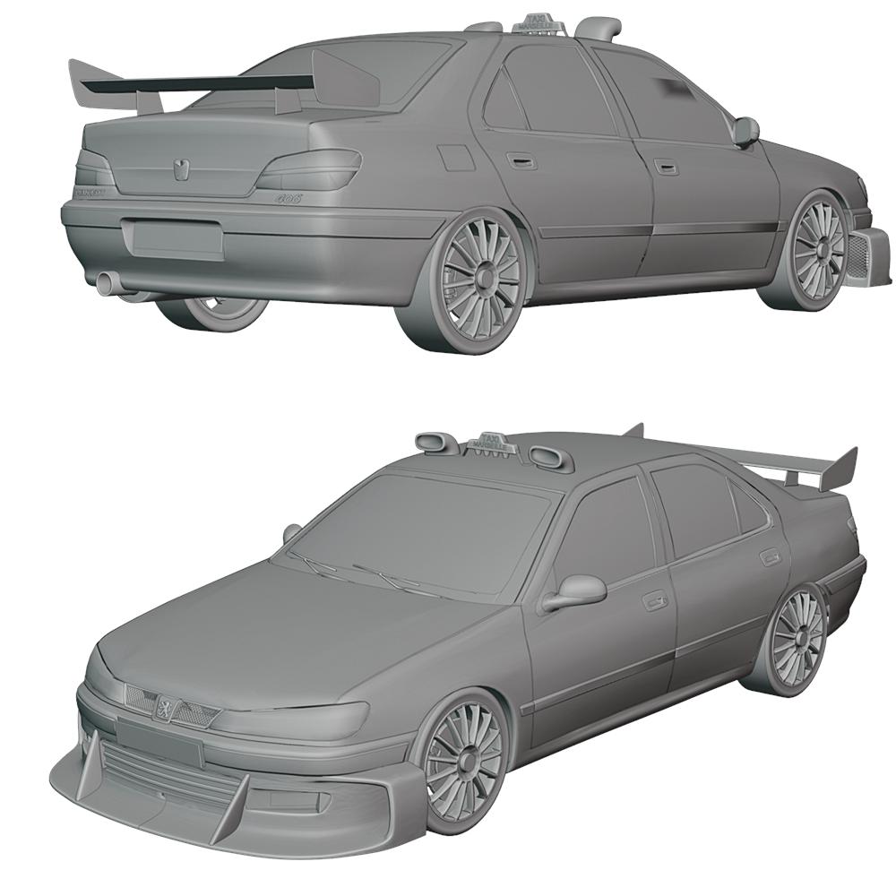 Peugeot 406 Taxi 3D Model | Mid-Poly | Game Ready | Blender |